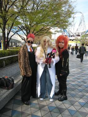 Myself as Yoshiki and two friends of mine dressed as hide at the reunion concerts!